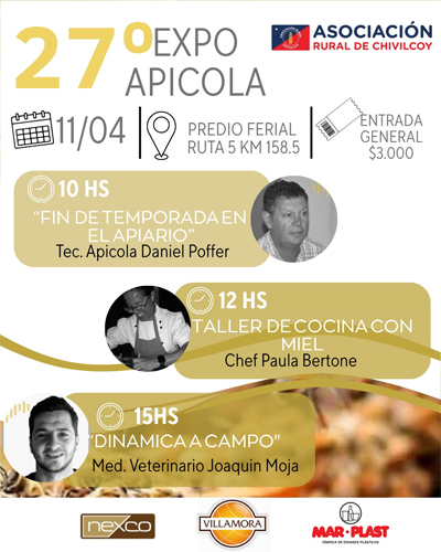 (Espacio Apícola, 9 de marzo de 2026) La municipalidad de Maciá publicó el programa de esta expo centrado en la presentación del Programa de Desarrollo Productivo del Sector Apícola de Entre Ríos a cargo del Ministro de Desarrollo Económico de Entre Ríos, seguido de un panel sobre desafíos y oportunidades de la miel orgánica, con funcionarios públicos provinciales y nacionales.